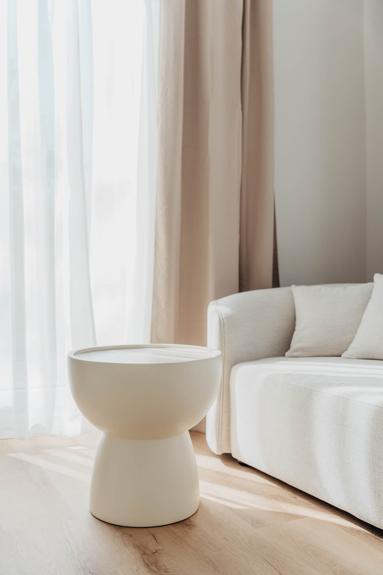 Gefertigt aus robustem Fiberglas ist Tuana Small besonders widerstandsfähig und gleichzeitig leicht zu bewegen – ideal für unterschiedliche Nutzungssituationen. Ob als Solitär neben dem Sofa oder kombiniert mit weiteren Elementen: Tuana Small verbindet klare Form mit Funktionalität – reduziert, stabil und vielseitig einsetzbar. Tuana Small ist die kompakte Variante unseres Couchtischs Tuana – mit einem Durchmesser von 50 cm und einer Höhe von 38 cm ideal als Beistelltisch oder als flexibler Zusatz im Wohnbereich. Die runde Form und das glatte, matte Finish in Off-White verleihen dem Tisch eine schlichte, elegante Ausstrahlung.